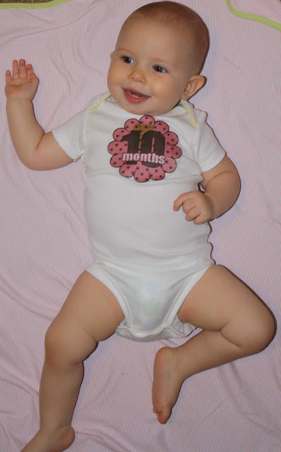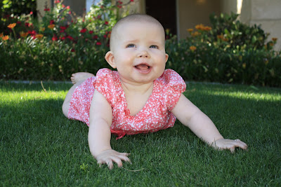 But Charlotte does not want to roll. She likes to sit up and probably just thinks that rolling is for babies or something. She finds other ways to get to her toys such as stretching and even a little scooting. She tries so hard to crawl but it doesn't quite work yet but soon for sure. :-)